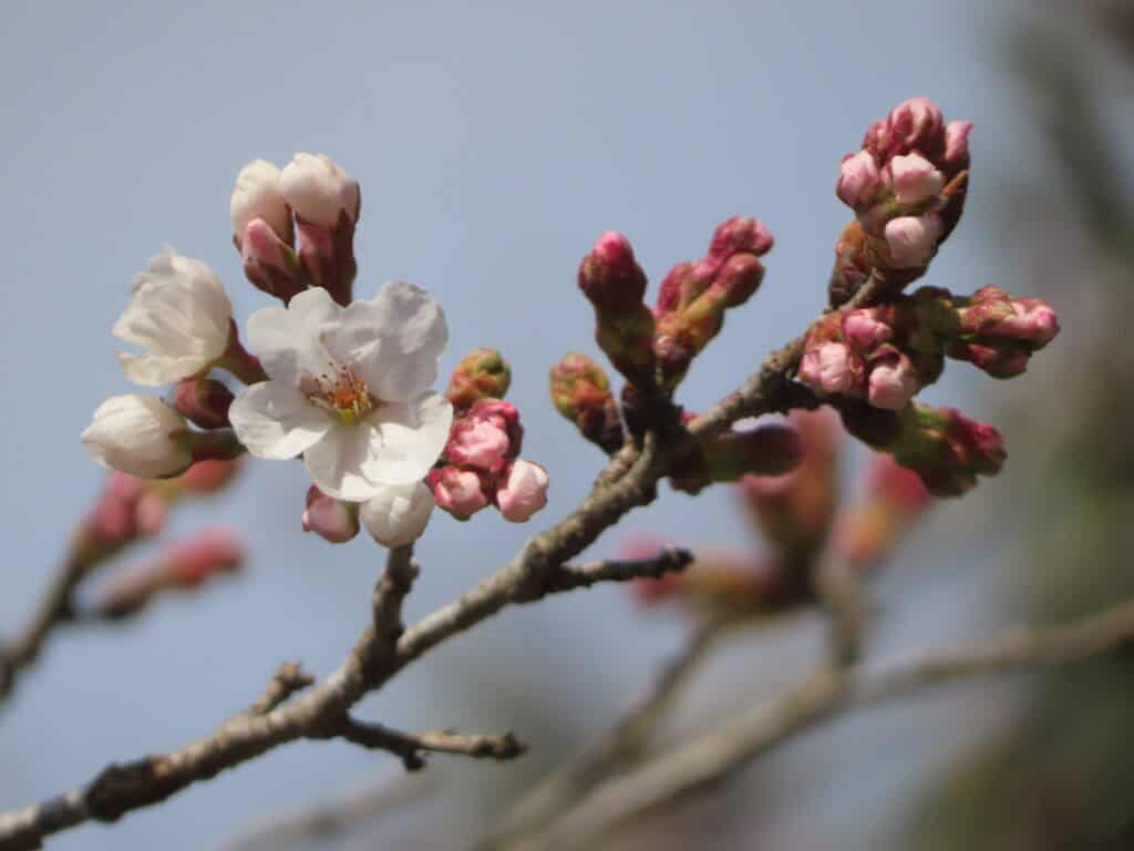 昨年は3月22日が開花の記録となっていますので、かなり早い開花です。これからも比較的暖かい日が続きそうなので、桜まつりが予定されている3月20日、21日は見ごろを迎えていると思います。
